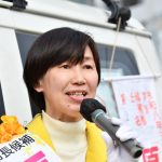 平和の危機が進む中、知事が「安全保障は国の専管事項」と繰り返したことを批判。「政府の行為によって再び戦争の惨禍が起こることのないようにすることを決意」とした憲法を示し「政府に任せてよいわけがない」と述べ、平和を守る行動を呼びかけました。