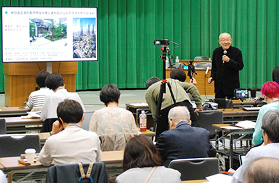 東京都の市街地再開発が、都心部だけでなく23区全体、多摩地域にも広がっています。再開発の問題点とともに各地の運動に学ぼうと、日本共産党東京都委員会は24日、党本部で都内の地方議員対象に交流学習会を開きました。岩見良太郎埼玉大学名誉教授が講演。住民不在の再開発による「総まちこわし」が進むなか、「地域のさまざまな住民運動がつながる『総まちなおし』運動の展開が必要だ」と語りました。