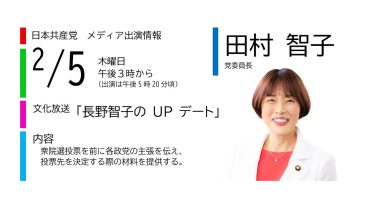 2026総選挙 【メディア出演】2月5日(木)田村智子委員長が文化放送「長野智子のUPデート」に出演します