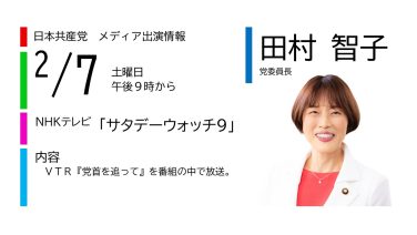 2026総選挙 【メディア出演】2月7日(土)田村智子委員長がNHKテレビ「サタデーウォッチ9」に出演します