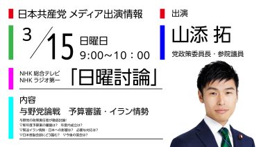 2026総選挙 自民消費税公約は空手形 NHK討論で山添氏 「検討加速」を告発