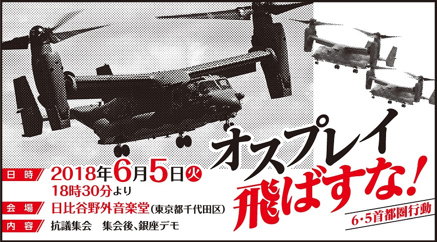 お知らせ 6.5「オスプレイ飛ばすな」日比谷野音で抗議集会