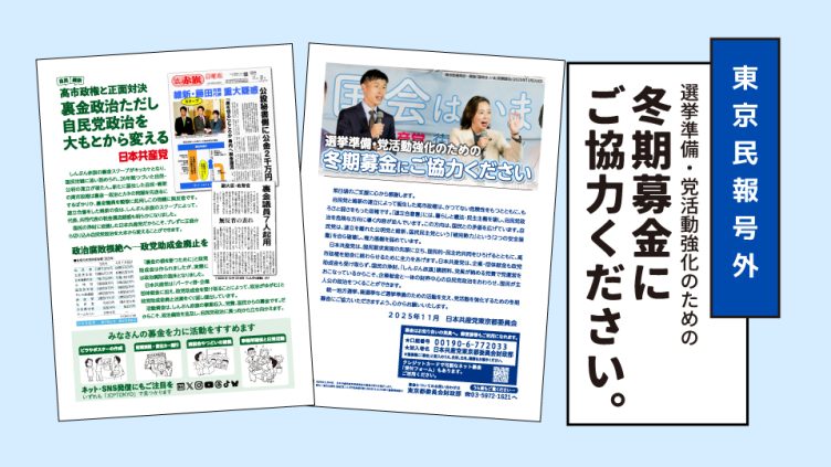 お知らせ 【ビラ】選挙準備、党活動強化のための、冬期募金にご協力ください